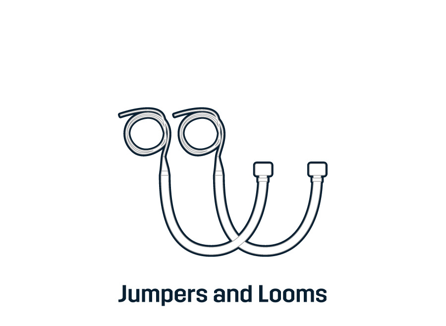 There are heavy duty inter-car power jumpers, communications cable assemblies and shore supplies jumpers. Hybrid jumpers include a combination of power and communications arrangements.